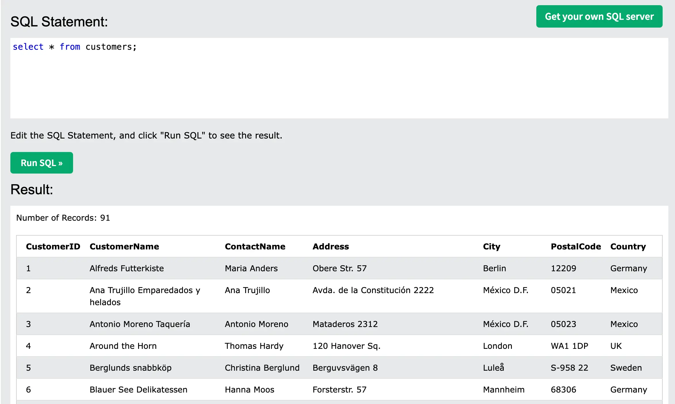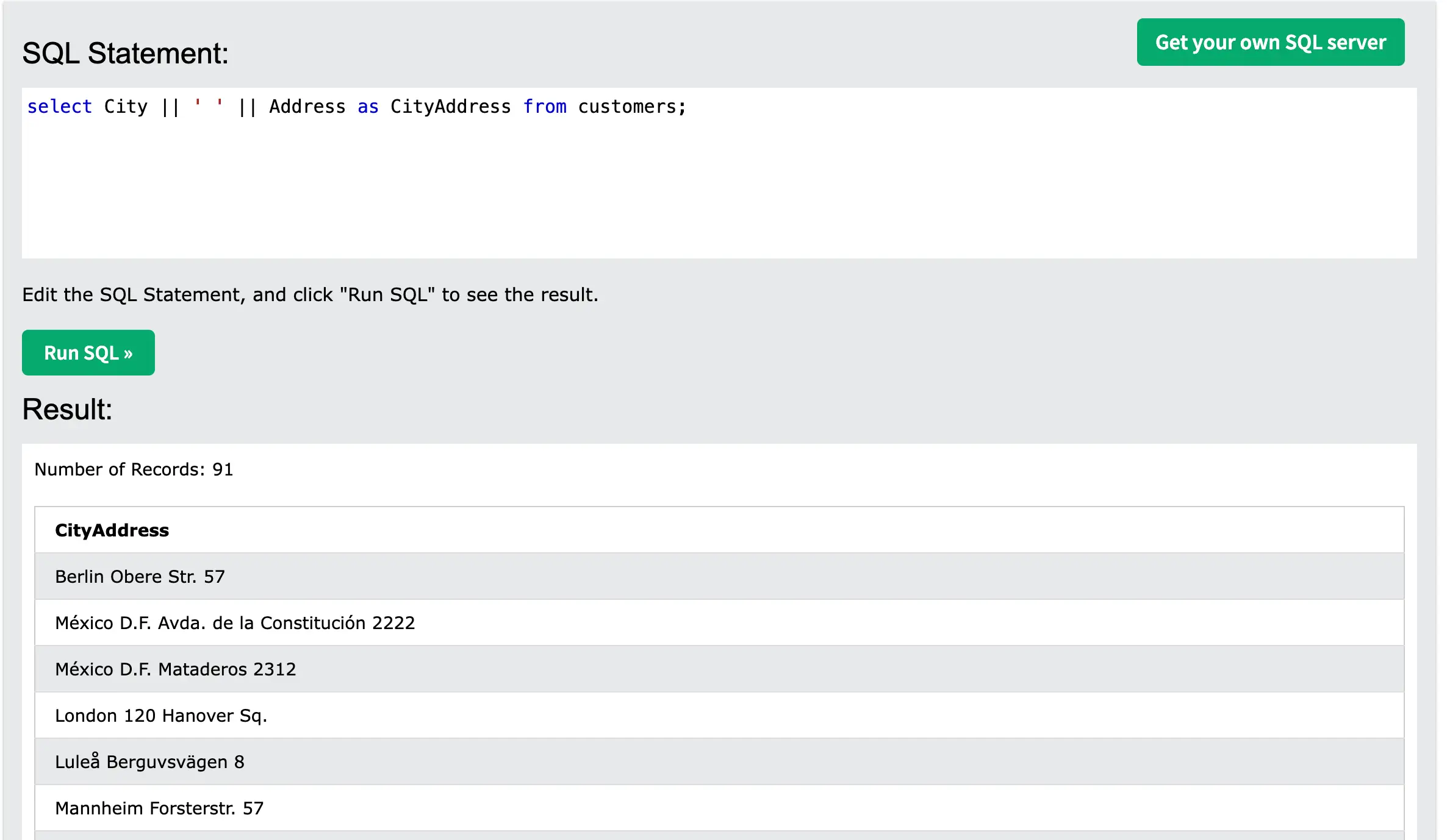 select City || ' ' || Address as CityAddress from customers;