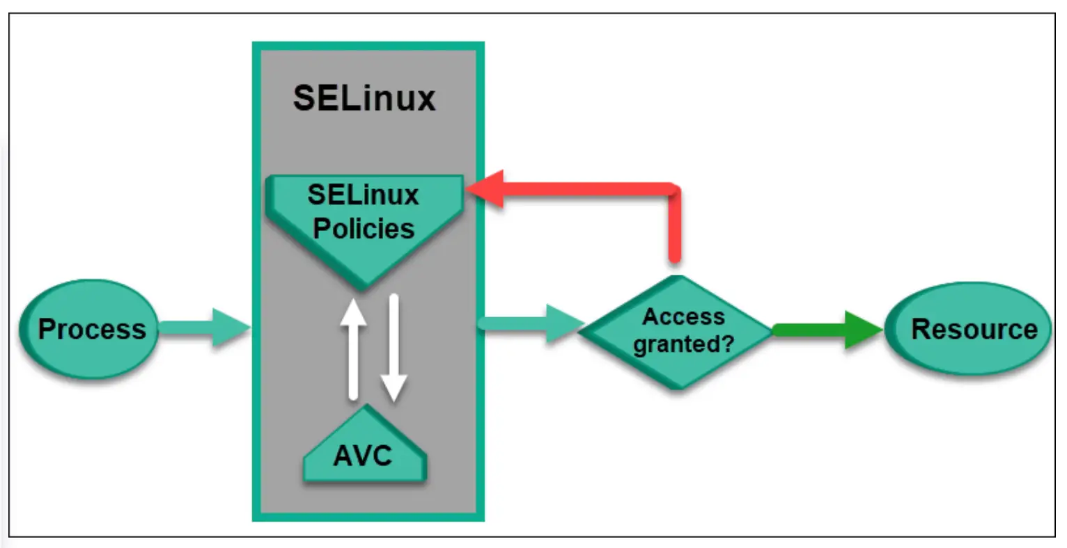SELinux는 시스템에서 실행되는 프로세스와 시스템 리소스 간의 액세스를 통제합니다. 신뢰할 수 없는 소프트웨어나 악의적인 공격으로부터 시스템을 보호합니다. MAC(Mandatory Access Control)을 구현해서 모든 사용자, 프로세스, 파일에 대해 액세스 통제를 강제합니다.